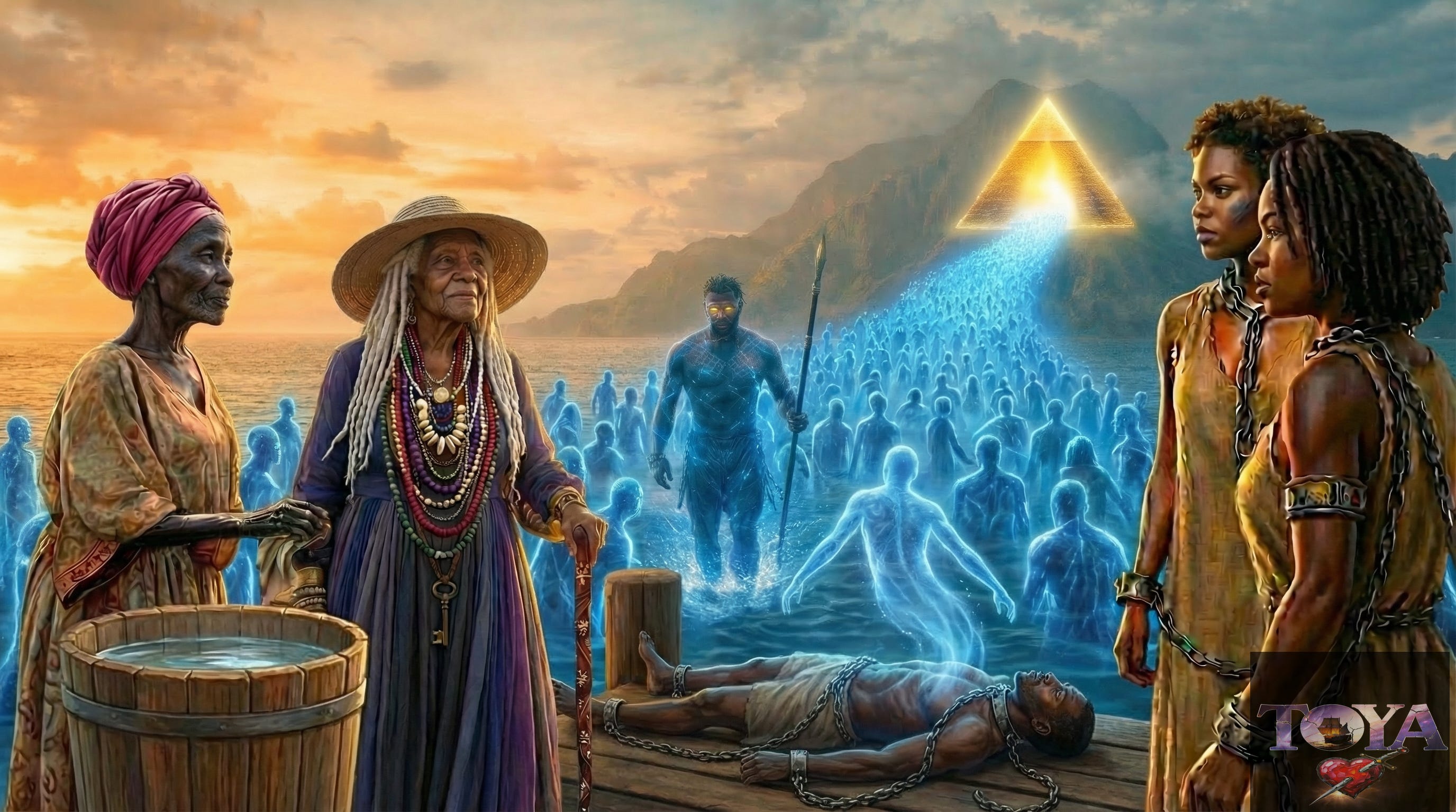 In Toya’s World, spirit walks both ways. Between the visible and the invisible. Manman Brijit is a master of both worlds. In Part 6, Kasango, the Kongo Warrior cut down in the failed Middle Passage ship rebellion, returns from the Ancestral World to speak to his living wife, Abundi. What does he say?